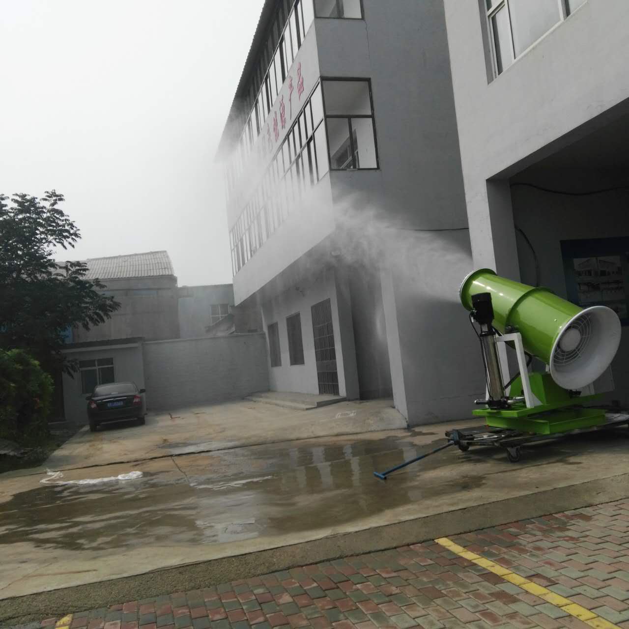與普通噴頭相比,霧炮機噴出的霧粒 細小,水霧范圍 大,對空氣中的灰塵具有 強的穿透力,與浮沉接觸時(shí)形成濕霧。
