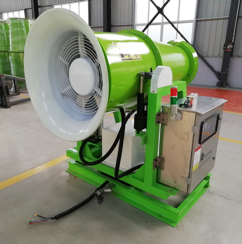 藍海遠程噴除塵噴霧機是根據風(fēng)送原理,先使用進(jìn)口高壓泵、微細霧化噴嘴將水霧化,再利用風(fēng)機風(fēng)量和風(fēng)壓將霧化后的水霧送到較遠距離,使得水霧到達較遠距離同時(shí)能夠覆蓋 大面積,水霧與粉塵凝結后降落,從而達到降塵目的。一臺可噴灑100多米的多功能抑塵車(chē)投入使用。該“除塵噴霧機”又叫環(huán)保除塵風(fēng)送式噴霧機,安裝在車(chē)的后半部分。